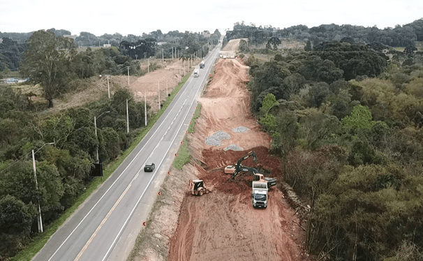 As obras de duplicação e construção de novos viadutos na PR-418, o Contorno Norte de Curitiba, seguem em intensa rotatividade, com supressão vegetal, terraplenagem e drenagem. Já são mais de três meses de intervenção, e quem passa no local, percebe a evolução do trabalho. O projeto, com entrega até fevereiro de 2027, prevê duplicação de quase 17 km entre Curitiba, Colombo e Almirante Tamandaré.